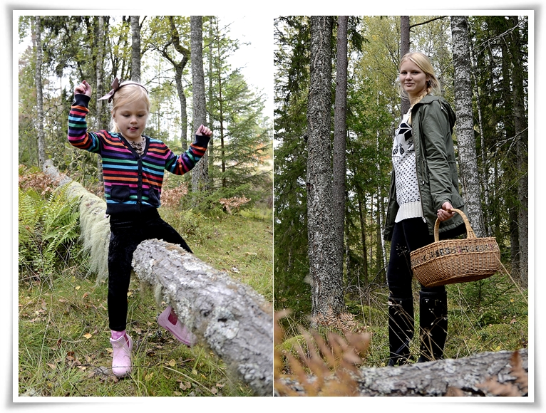 Idag tog jag mig alltså ledigt. Solen strålade bakom tunna moln och det var varmt ute. Plötsligt kände jag mig kvävd av att vara inne och längtade efter skogen och frisk välgörande höstluft. Lillan och mellantjejen var inte sena att haka på när jag föreslog en tur ut i svampskogen.